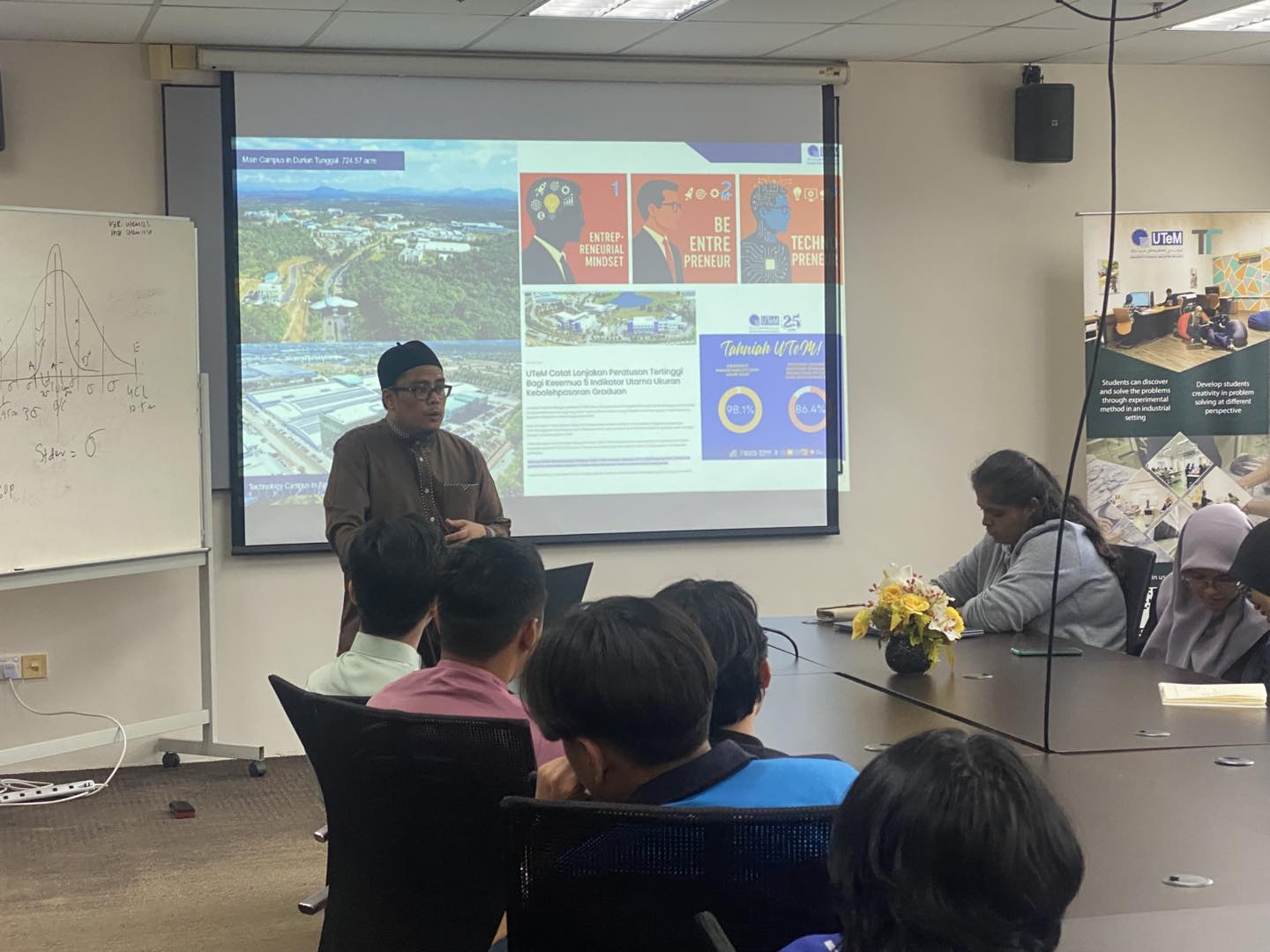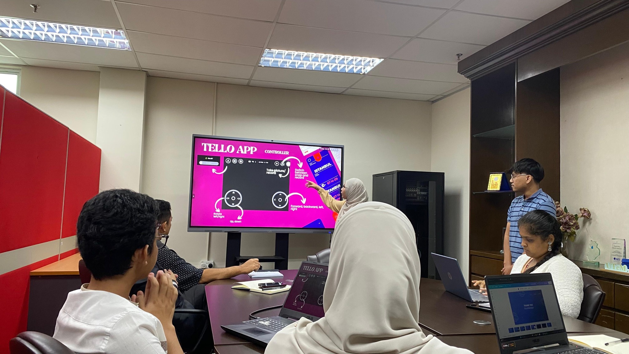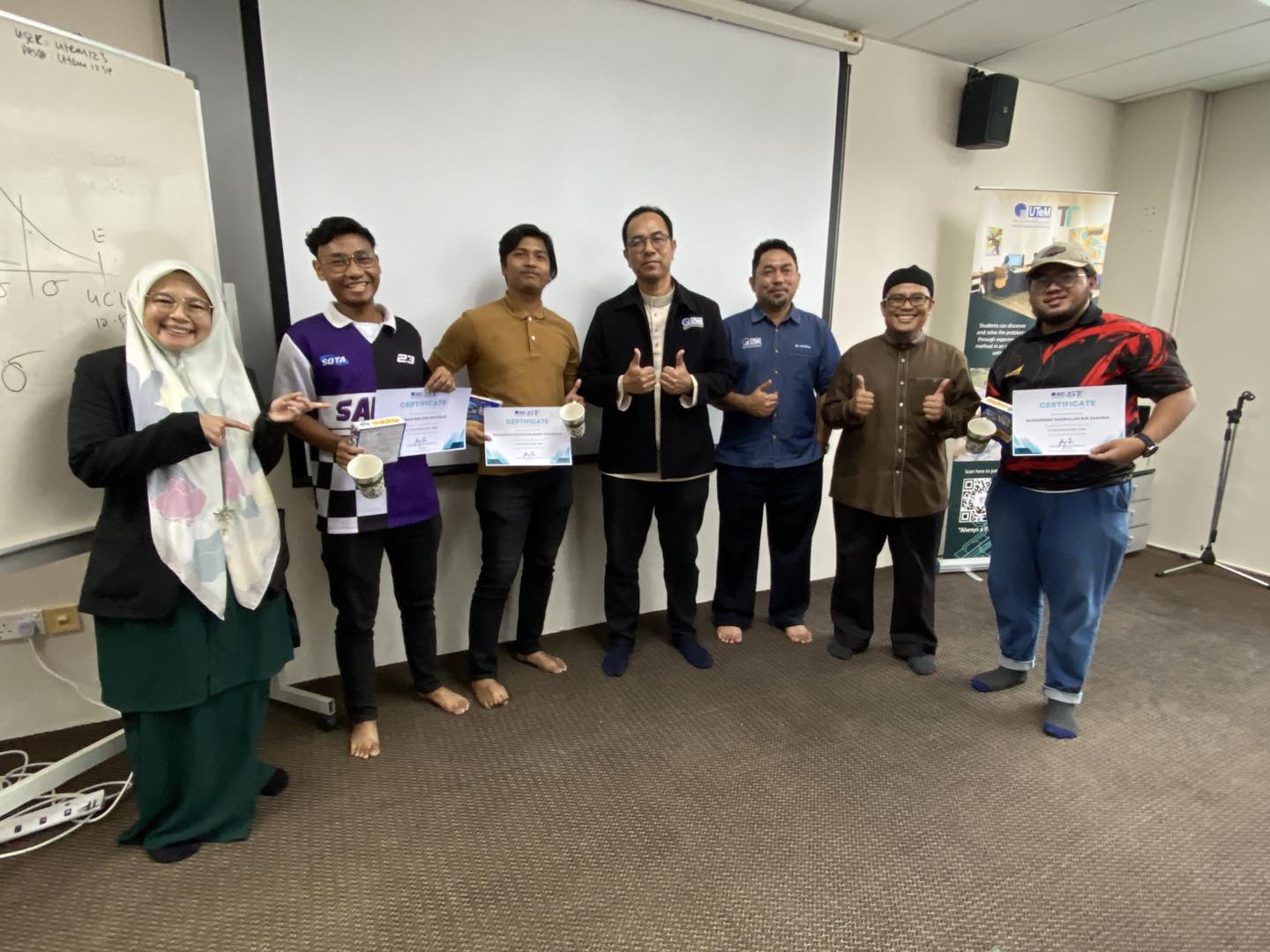 Teaching Factory UTeM hosted a session featuring presentations from UTeM and Institut Teknologi Sumatera (ITERA) industrial training students on their assigned projects. The first presentation covered their hands-on experience with Tello Drones and simulation training under the guidance of Ts. Dr. Hanizam Hashim, followed by practical demonstrations of their drone control skills. The second presentation by Dr. Isma Addi Jumbri introduced students to the 7P’s of marketing and entrepreneurship which are Product, Price, Place, Promotion, People, Process, and Physical as applicable to their industry roles. The meeting also outlined task assignments for welcoming guests from Universitas Islam Bandung (UNISBA), Indonesia, who will participate in a mobility program and drone training at TF from 29–31 July 2025.