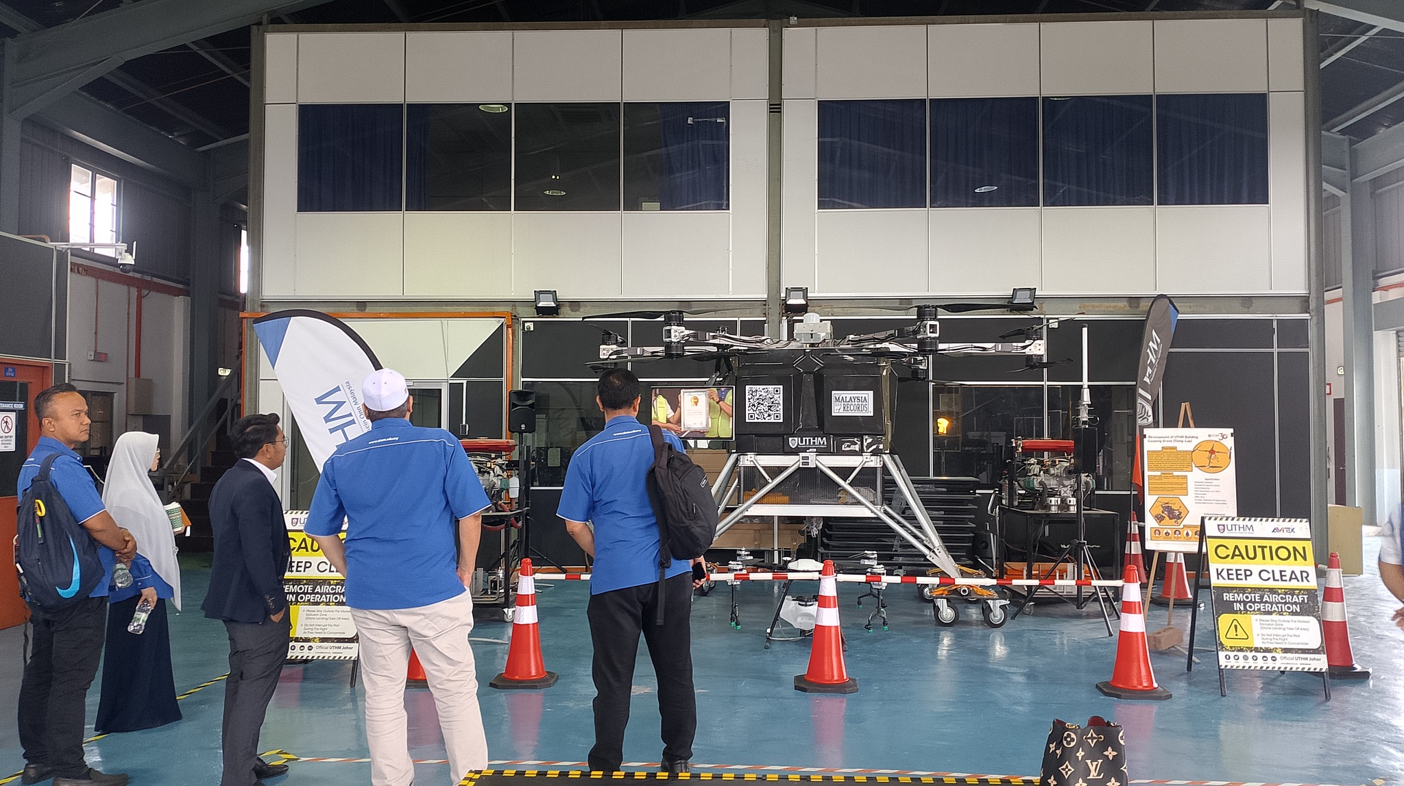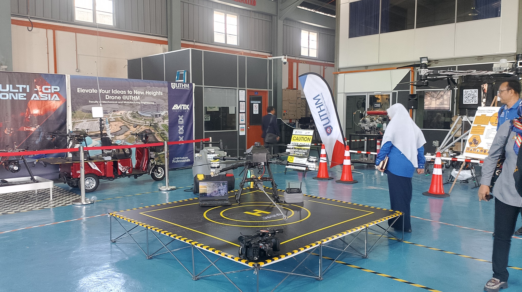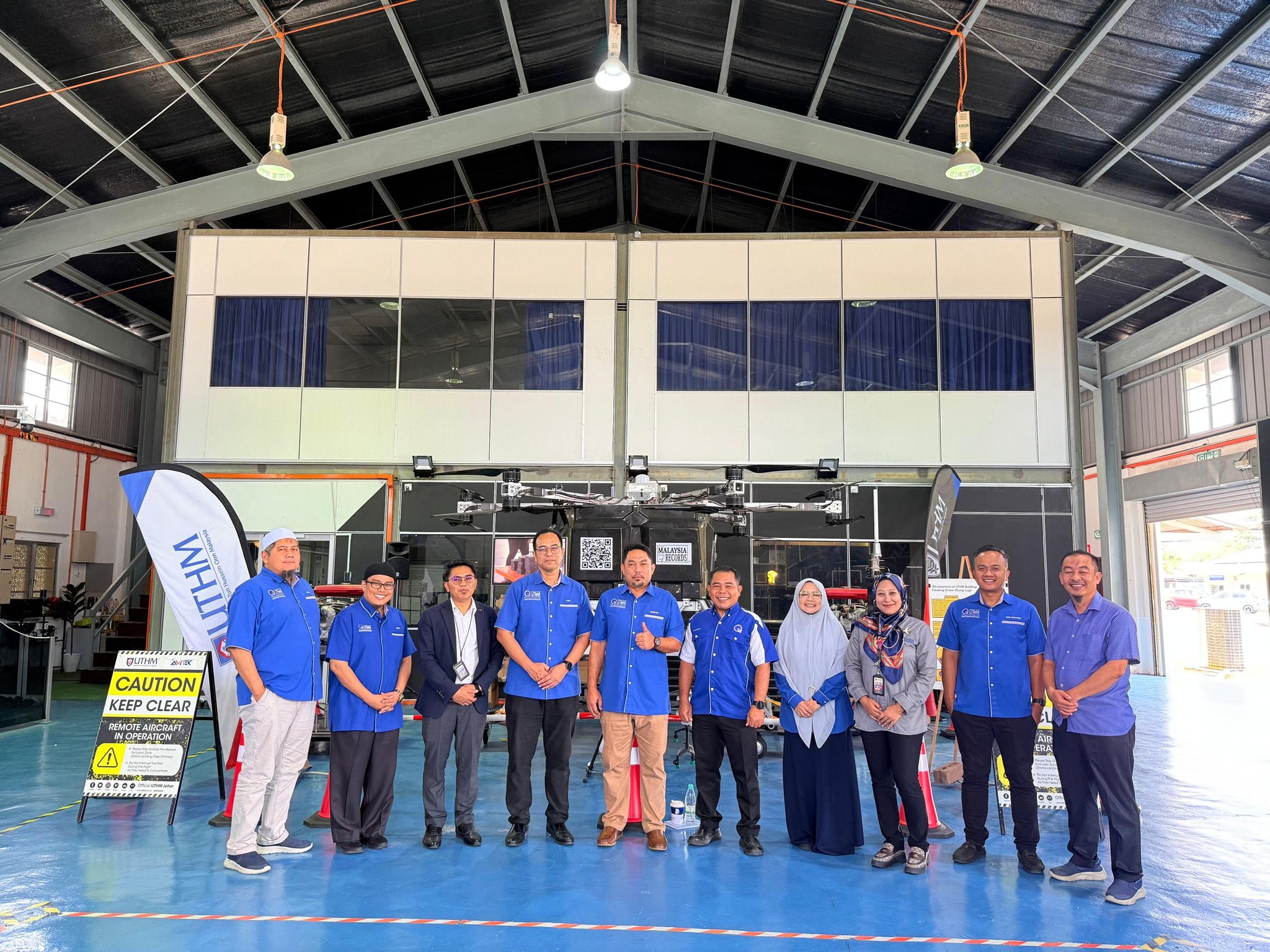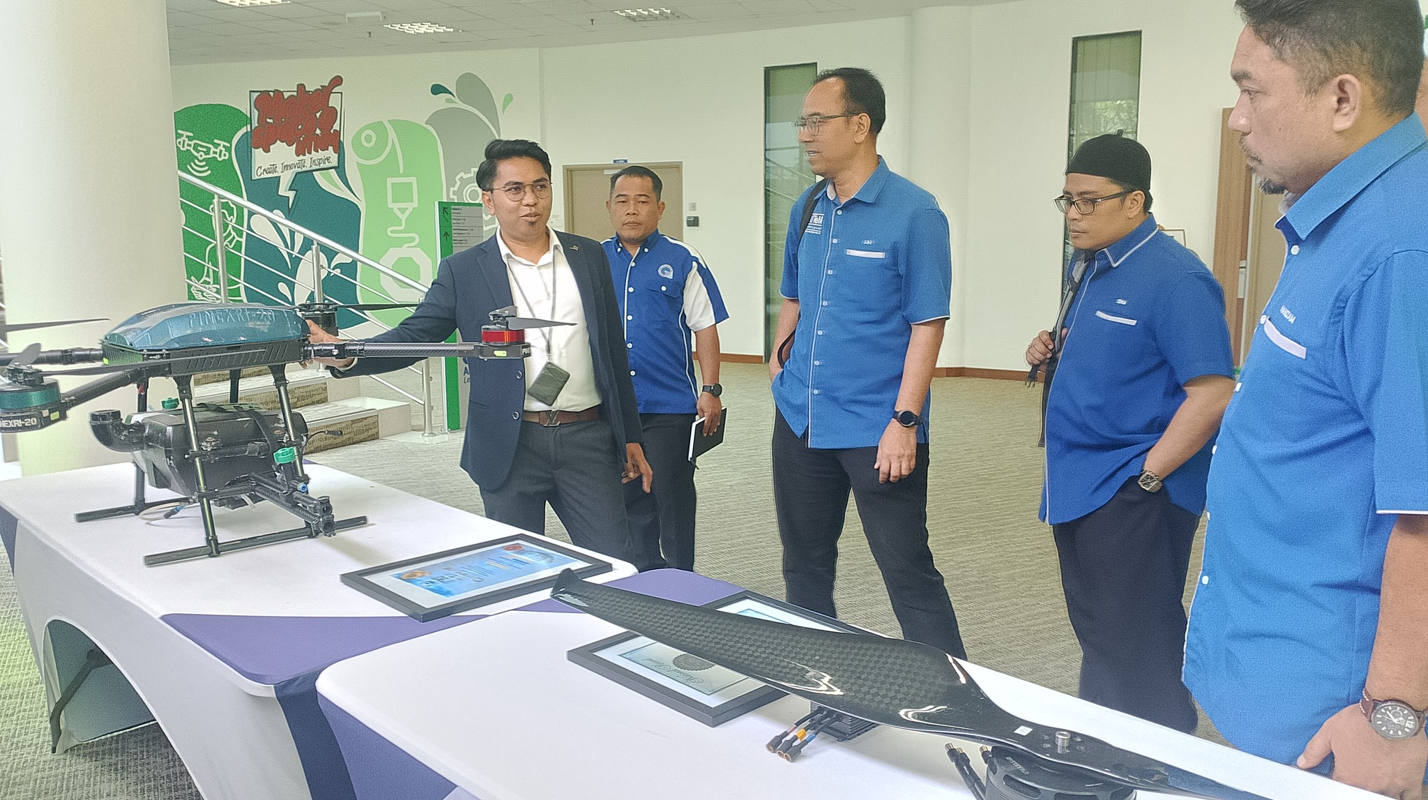 The tour started at the UTHM main campus and included stops to the Faculty of Mechanical and Manufacturing Engineering (FKMP) research laboratories, Avitex Solution Sdn. Bhd., and Perpustakaan Tunku Aminah UTHM. Drone applications were highlighted in a briefing by Assoc. Prof. Dr. Mohammad Zulafif bin Rahim.