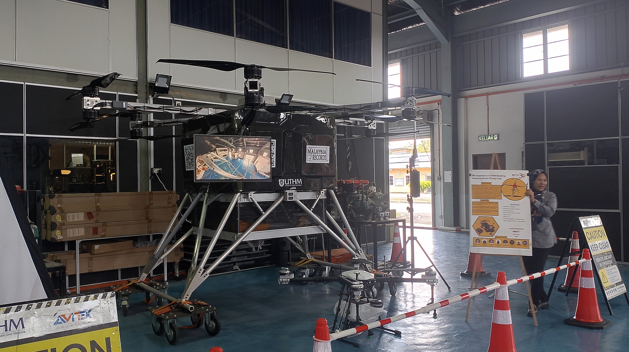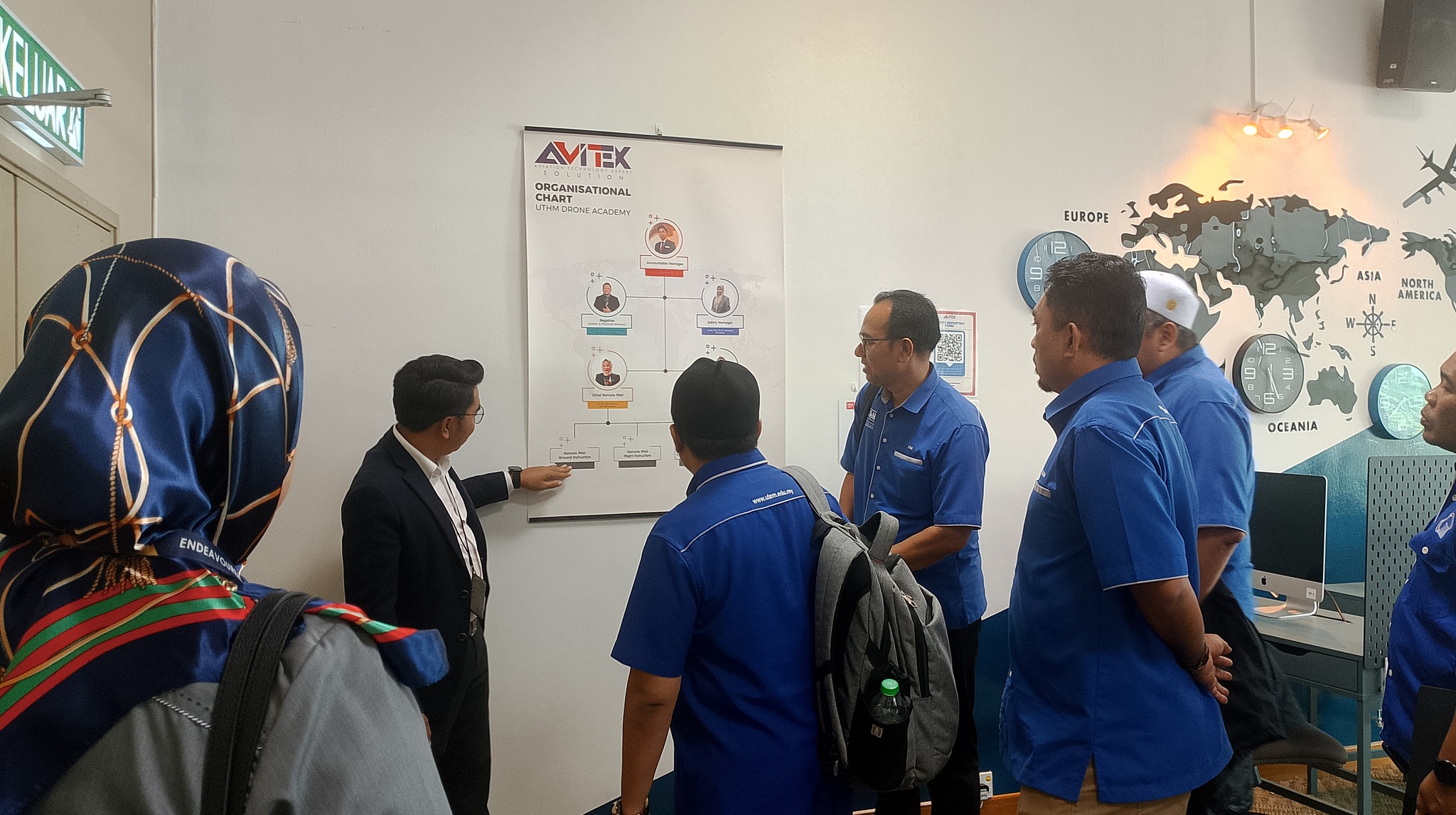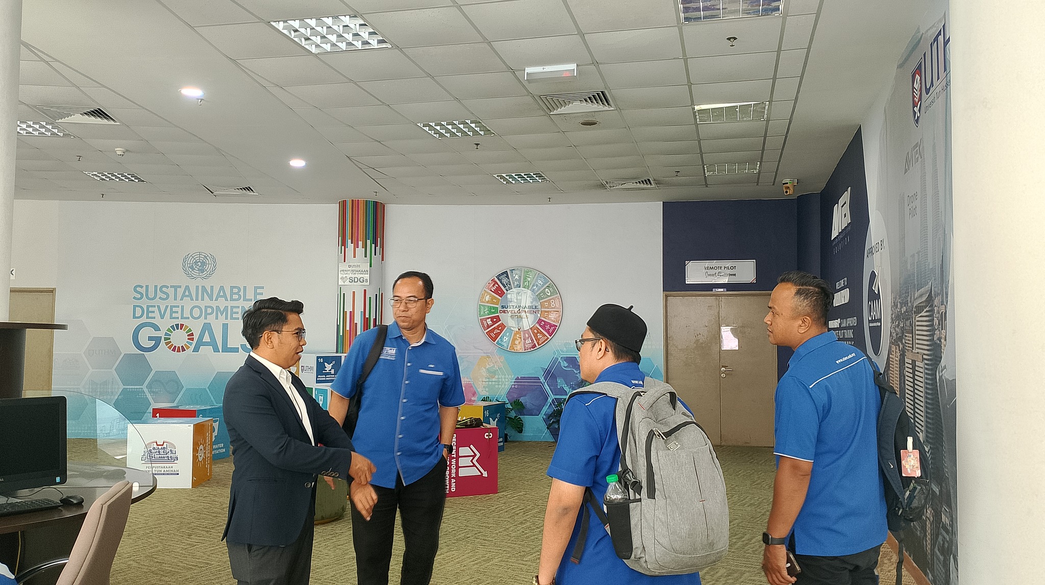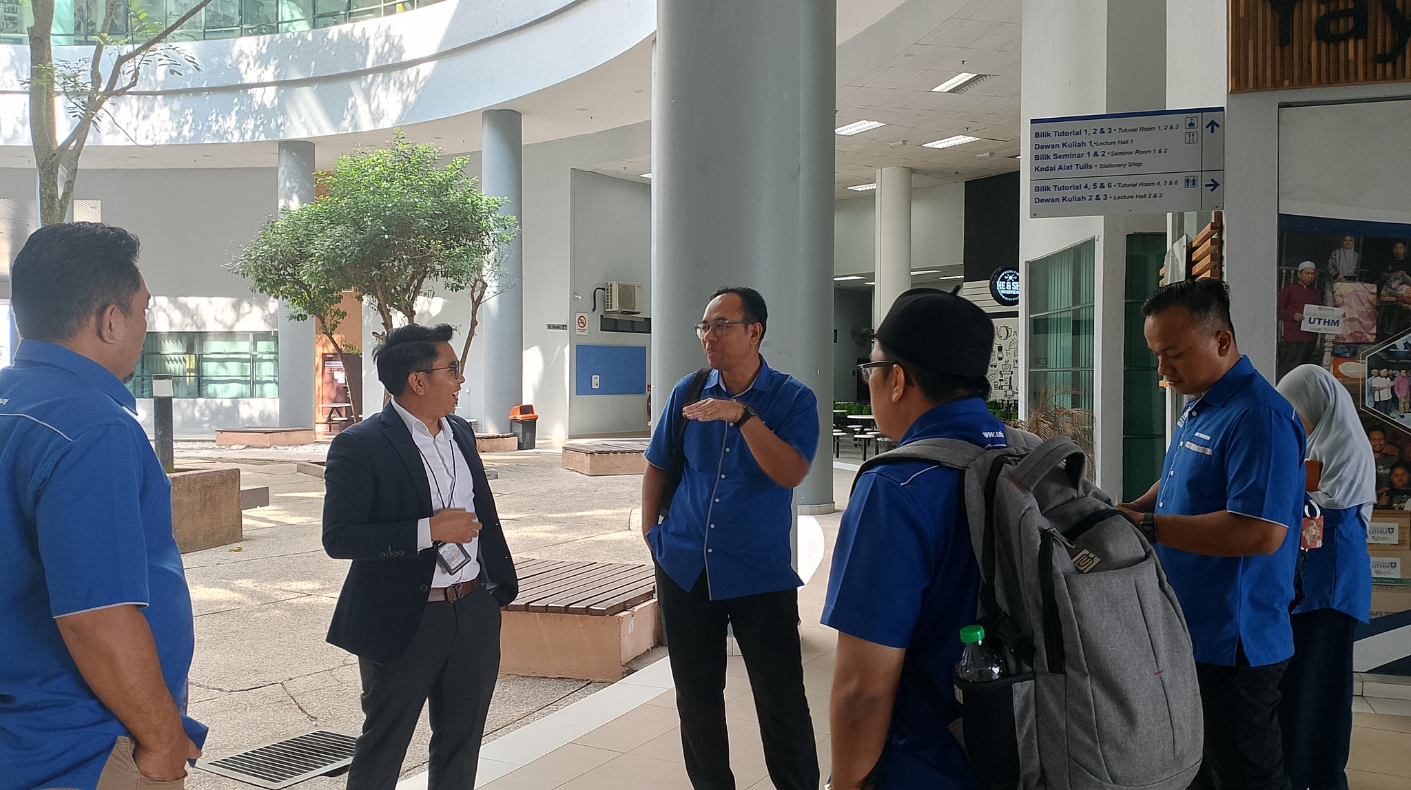 The tour started at the UTHM main campus and included stops to the Faculty of Mechanical and Manufacturing Engineering (FKMP) research laboratories, Avitex Solution Sdn. Bhd., and Perpustakaan Tunku Aminah UTHM. Drone applications were highlighted in a briefing by Assoc. Prof. Dr. Mohammad Zulafif bin Rahim.