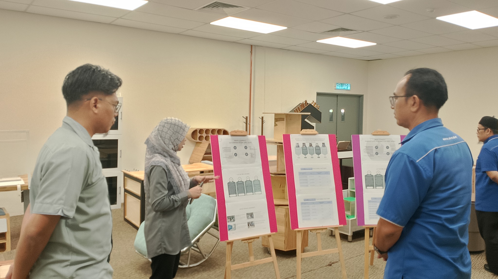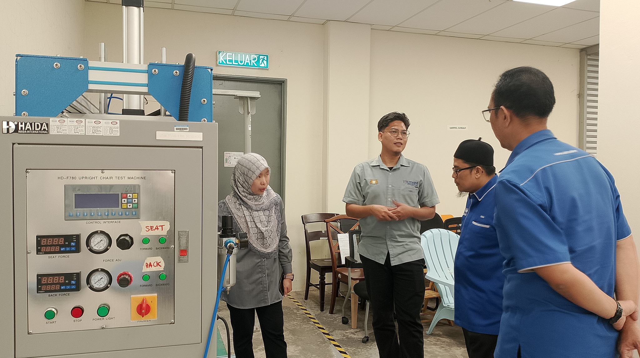 Following a meeting with Dr. Juliana binti Abdul Halip and a tour of the production areas and teaching facilities, the delegation traveled to the UTHM Pagoh Branch to investigate the Teaching Factory operations centered on the furniture industry.